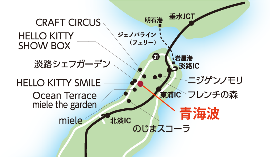 神姫バス・北淡路西海岸ライン「野島大川(青海波前)」にて下車、徒歩3分