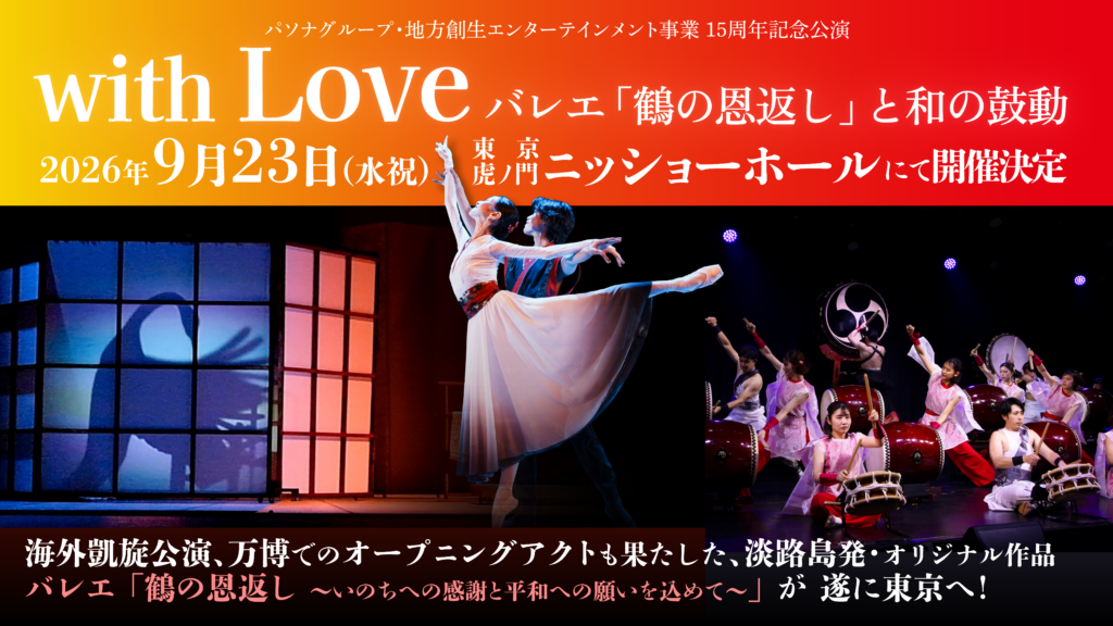 PASONA Awaji World Balletは、オリジナル作品『with Love ~バレエ「鶴の恩返し」と和の鼓動~』を9月23日(水祝)にニッショーホール(東京都港区)で上演いたします。